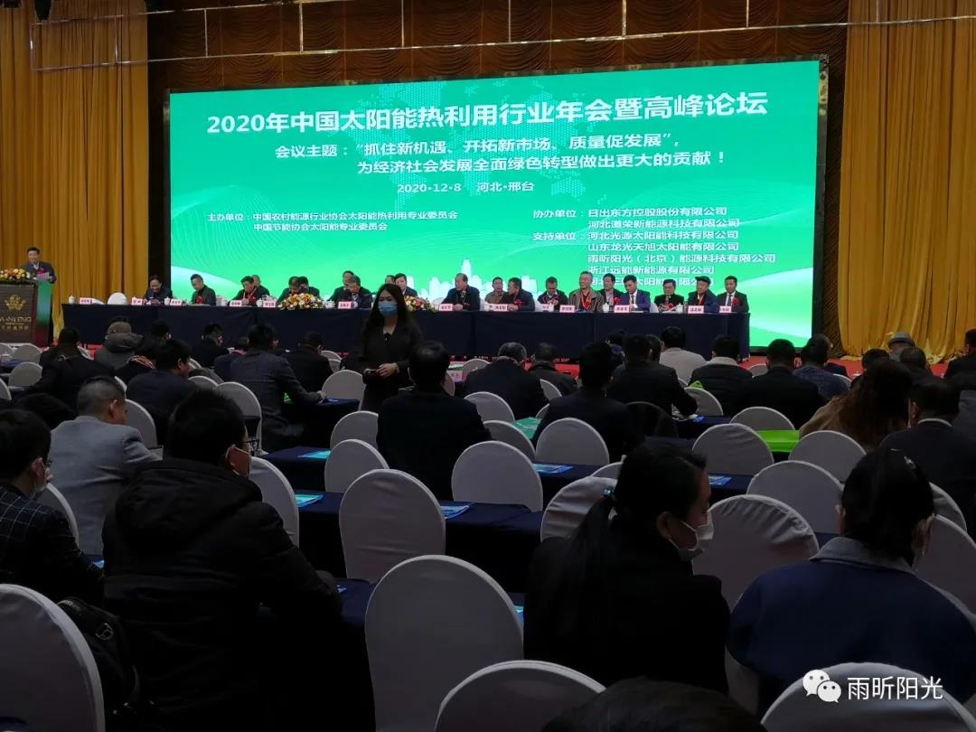 本次大會雨昕陽光董事長孫培雨從為行業提出了建議,對公司在2020年在研發制造和開拓新興市場方面兩方面做的努力做了簡單介紹,雨昕陽光在國際國內形勢復雜多變的環境下,堅定信心,做大做專太陽能光熱市場,實現銷售額同比增長了2倍,在行業發展持續負增長的情況下,逆勢而行,斥巨資在威縣建設新能源產業基地。歷經二十年的發展,雨昕陽光逐漸做大做強。