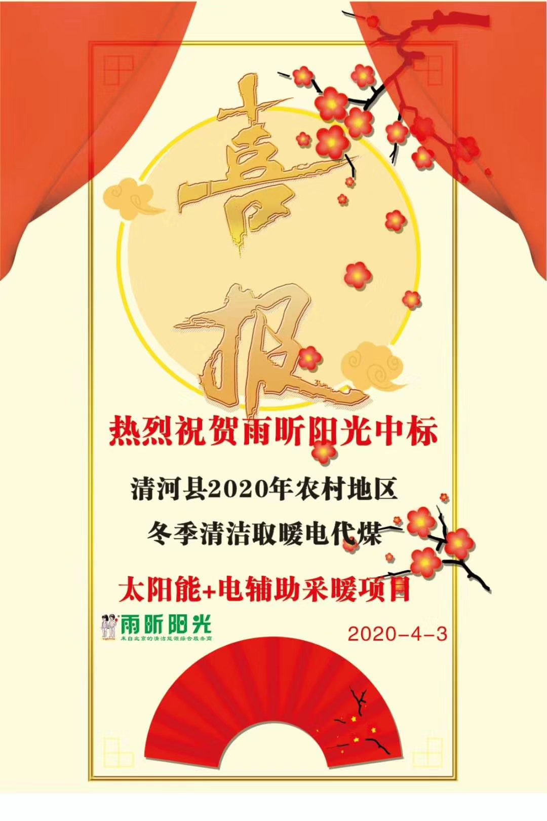 祝賀雨昕陽光中標清河縣2020年農村地區冬季清潔取暖電代煤項目