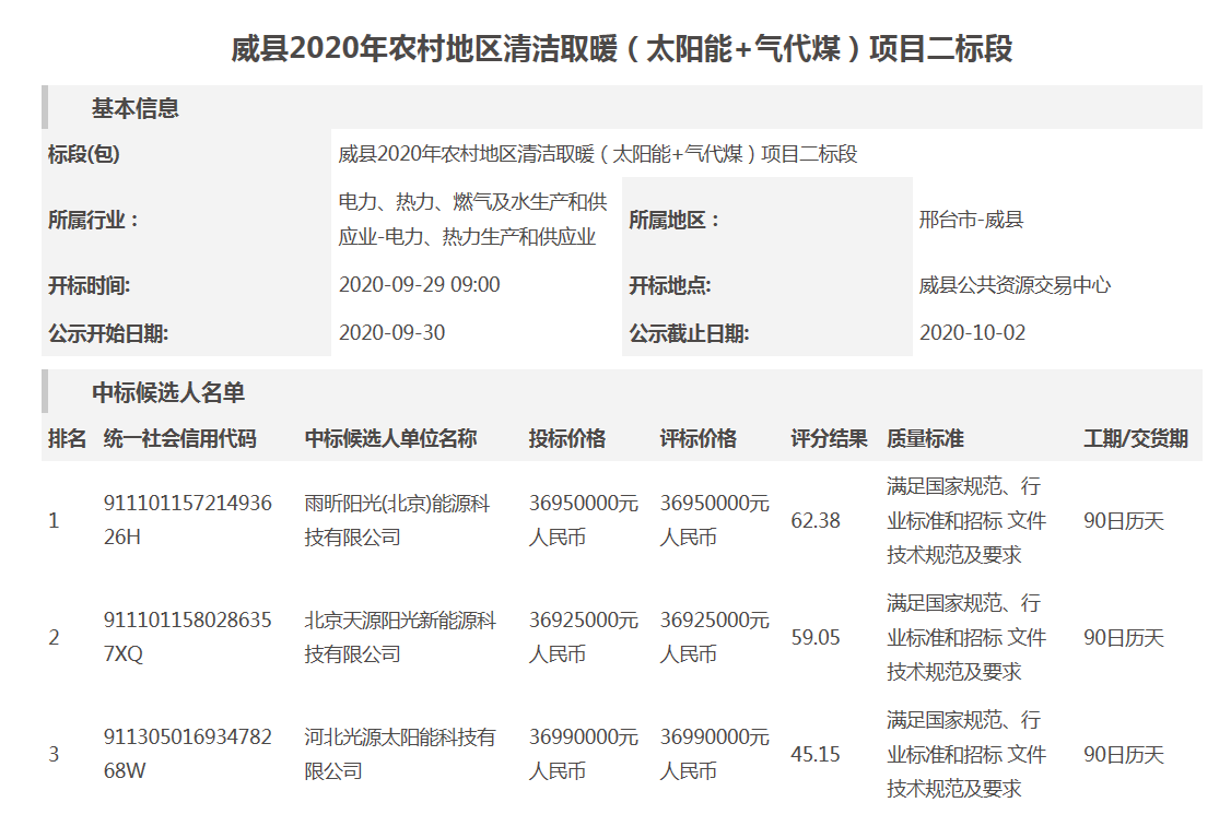 祝賀雨昕陽光中標威縣2020年農村地區清潔取暖(太陽能+氣代煤)項目